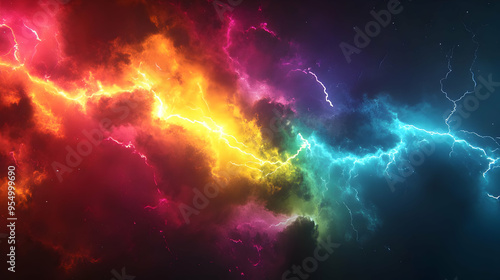 Abstract Lightning Storm Background Animation with Colorful Clouds and Energy