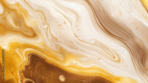 Abstract liquid marble background with soft waves of yellow, mocca, and white – modern artistic design in high resolution