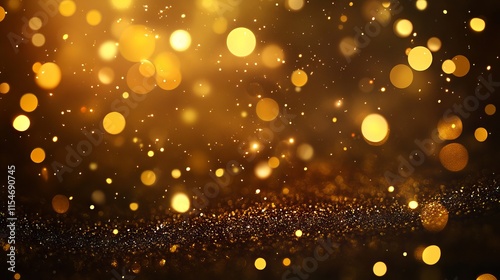 Abstract luxury gold background with glittering particles, bokeh lights, and golden foil texture - elegant holiday design for christmas or festive celebrations