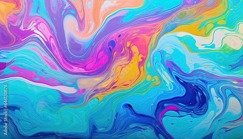 Abstract marbled acrylic paint ink painted waves painting texture colorful background banner - Bold colors, rainbow color swirls wave Generative AI