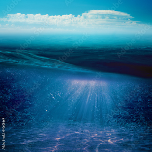 sea, ocean, water, bay, surface, serenity, marin, diving, serene, coral, seaweed, turbulence, skyline, sunlight, deep, underwater, under, wave, nature, environmental, sky, day, dusk, down, summer, spring, tropical, travel, trip, vacation, miracle, harmony, calmness, hope, sunbeam, beam, light, abyss, stormy, tempest, gale