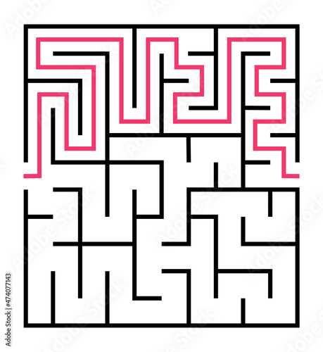 Abstract maze. Find right way. Isolated simple square maze black line on white background. Vector illustration.
