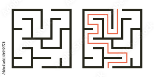 Abstract maze. Find right way. Isolated simple square maze black line on white background. Vector illustration.