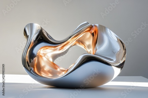 sculpture, abstract art, modern art, chrome, silver, copper, bronze, interior design, home decor, artistic, design, artwork, light, shiny, glossy, smooth, elegant, luxury, unique, style, creative, craftsmanship, hand-made, metalwork