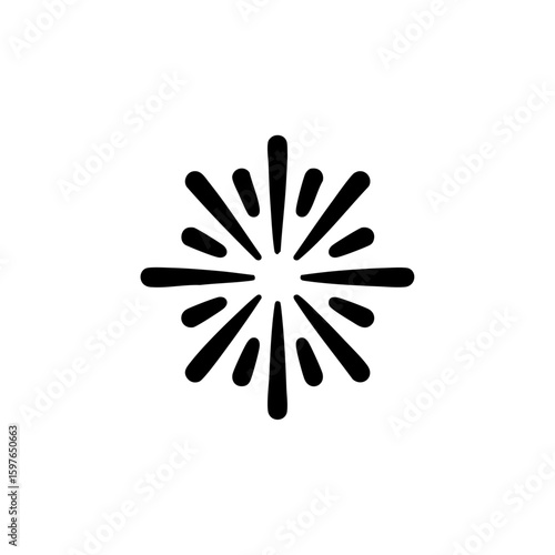 Abstract minimalist burst icon with radiating lines, symbolizing energy, explosion, innovation, or celebration.