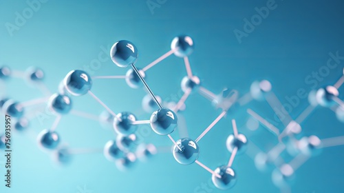 Abstract model depicting molecules, reflecting scientific research in molecular chemistry, presented in a 3D illustration against a pearl blue backdrop.