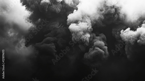 Abstract monochrome image of swirling smoke, creating a dramatic and textured visual.