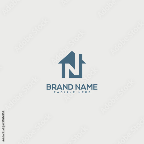 Abstract N letter logo design. Construction, home, real estate, building, property for vector elegant.