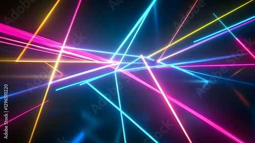 Abstract neon background with glowing lines and a glow effect on a black backdrop. Vector illustration of a retro laser light in blue, pink, and purple colors for a party poster or night club banner