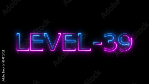 Abstract neon level 39 number 4k illustration. Level 39 neon text. Neon level up sign. motion graphic perfect for social media content. black background 4k illustration.