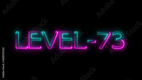 Abstract neon level 73 number 4k illustration. Level 73 neon text. Neon level up sign. motion graphic perfect for social media content. black background 4k illustration.