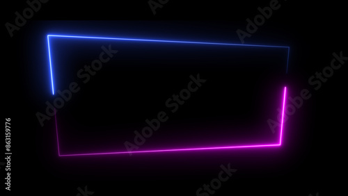 Abstract neon light glowing rectangle frame loading background 4k illustration.