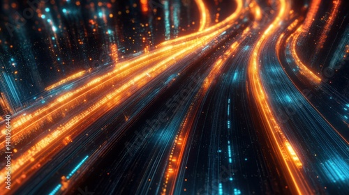 Abstract Neon Light Trails with Blue and Orange Glow in Motion