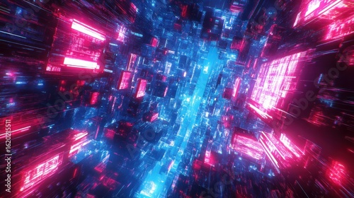 technology, neon, light, pink, blue, digital, abstract, futuristic, geometric, shape, line, speed, movement, energy, glowing, dark, design, architecture, digital artwork, illustration, three-dimensional, virtual, space, datum, information, system, interface, computer, graphic design, neon light, computer graphic, graphic, illuminated, creative, modern, art, background, isolated, copy space, style, image