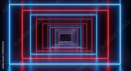 neon, abstract, tunnel, light, geometric, design, modern, background, rectangle, red, blue, glowing, futuristic, digital, technology, science, art, shape, bright, perspective, depth, movement, three-dimensional, illustration, dark, space, energy, visualisation, creative, pattern, texture, wallpaper, gradient, graphic, template, web, media, presentation, artwork, visual, style, element, concept