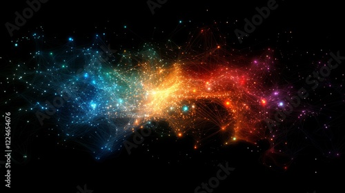 Abstract network background with interconnected glowing nodes and lines on a black background