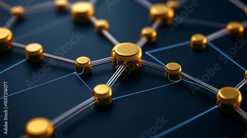 Abstract Network Connection with Gold Nodes and Blue Lines