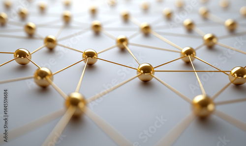 Abstract network design featuring golden spheres interconnected by lines, representing technology and innovation.