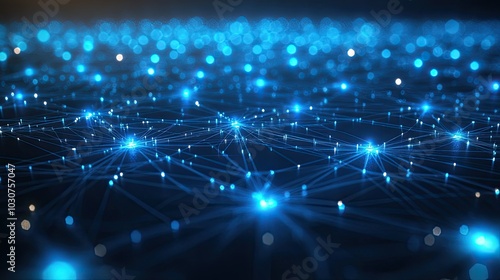 Abstract network of glowing blue nodes and connections symbolizing digital data exchange and technological operations