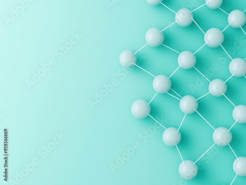 Abstract network of glowing spheres, 3d render illustration, isolated on teal background, representing advanced technology and seamless connectivity.