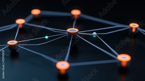 Abstract network of interconnected nodes and lines with glowing elements.