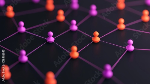 Abstract network of purple and orange human figures connected by lines, representing networking and communication.