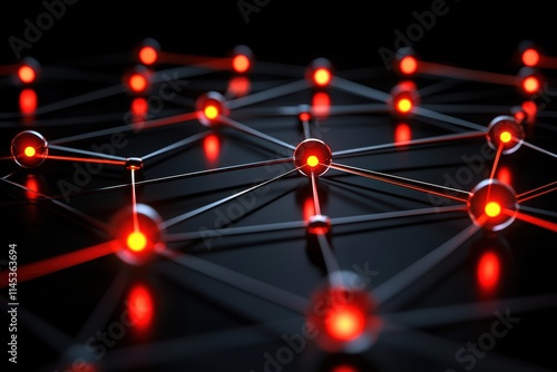 Abstract Network Structure with Red Nodes and Black Background
