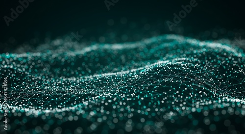 Abstract Network Wavy Digital Mesh on Dark Teal Background Futuristic Tech Visual