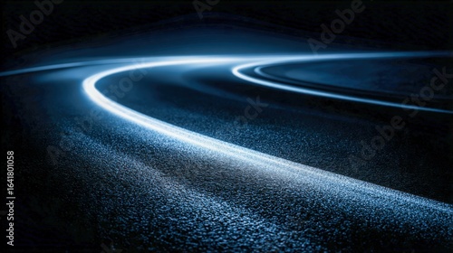 Abstract Night Road with Glowing Lines: Dark Asphalt Surface, Modern Futuristic Transportation Background