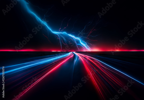 abstract, art, blue, blur, bolt, bright, colourful, cyan, dark, design, digital, direction, dynamic, electric, energy, fast, forward, future, futuristic, glow, graphic, horizon, illuminated, illustration, journey, landscape, light, lightning, line, long exposure, magenta, motion, movement, neon, night, path, perspective, power, red, road, scene, sky, speed, storm, streak, strike, thunder, toward, trail