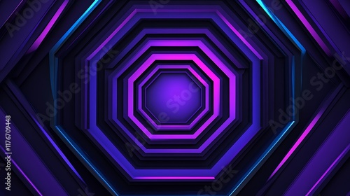 abstract, octagon, tunnel, shape, geometry, neon, purple, blue, light, colours, design, background, futuristic, modern, technology, pattern, texture, vibrant, bright, dark, shadow, glossy, reflections, line, angle, depth, perspective, digital, art, illustration, graphic, visual, style, creative, aesthetic, dynamic, energy, power, space, cosmic, glow, illumination