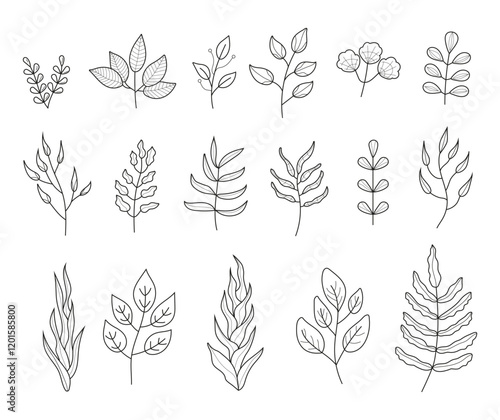 Abstract one-line art of a leaf and botanical elements, designed in a minimalist boho style.