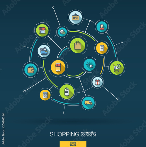 sale, shop, cart, store, buy, retail, pay, electronic, supermarket, purchase, commerce, payment, e-business, bag, money, card, delivery, client, sold, click, per, online, technology, digital, interface, global, information, tech, network, infographic, communication, smart, connect, integrate, circle, icon, system, background, vector, abstract, concept, business, illustration, development, interactive, interact, icon, presentation, banner, process