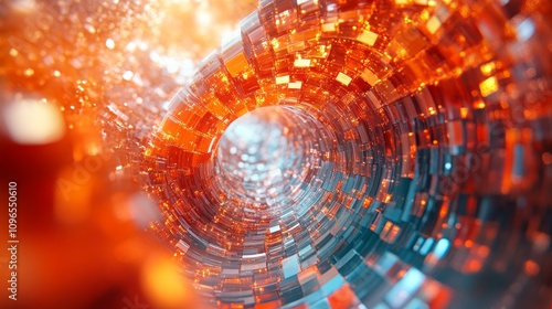 abstract, orange, blue, digital, tunnel, technology, futuristic, science, datum, network, connection, speed, light, glow, bright, vibrant, colours, pattern, design, texture, background, modern, style, graphic, art, illustration, visual, effect, energy, power, innovation, creativity, perspective, depth, motion, movement, dynamic, flow, seamless, geometric, shape, cube, block, line, reflective, shiny, glossy
