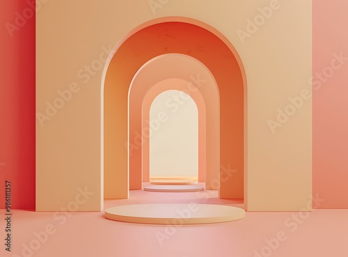 archway, arch, abstract, minimal, orange, background, minimalism, modern, design, dais, three-dimensional, render, geometric, shape, pastel, art, wall, colours, composition, light, interior, simple, style, graphic, surface, texture, curve, pattern, space