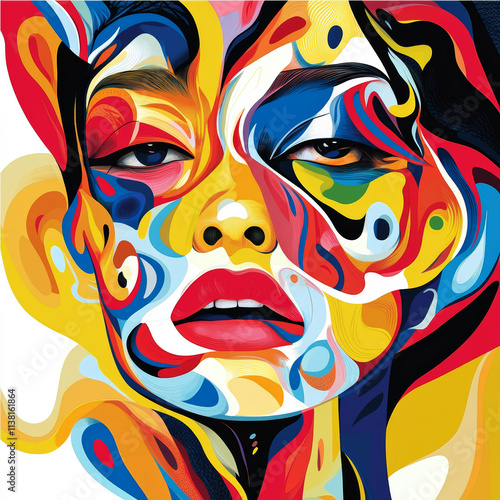 Abstract painting with a female face