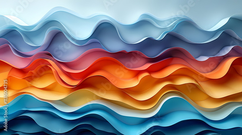 Abstract Paper Waves: A mesmerizing abstract art composition featuring layers of vibrant, colorful paper in wavy shapes, creating a visually stunning and textured design.