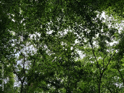 canopy, tree, leaf, green, looking up, forest, nature, background, beautiful, summer, spring, foliage, tree branch, sky, light, perspective, treetop, wood, park, environment, natural, fresh, vibrant, life, growth, abstract, pattern, texture, dense, lush