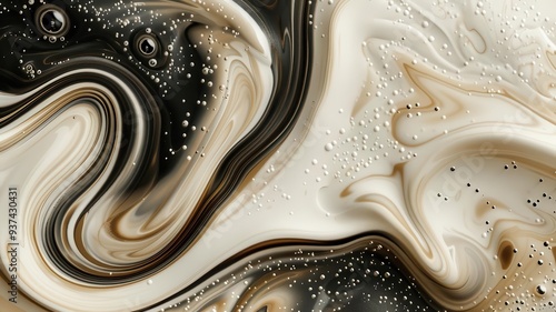 Abstract patterns in swirling milk and coffee, organic and calming, digital art
