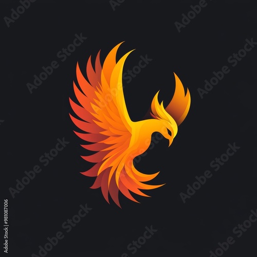 phoenix, fire, logotype, wing, bird, design, abstract, transformation, power, strength, rebirth, company, illustration, creature, symbol, mythical, red, yellow, black, creative, digital, graphic, orange, isolated, gradient