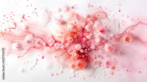 Abstract pink and white fluid art with bubbles and swirls creating dreamy, organic texture