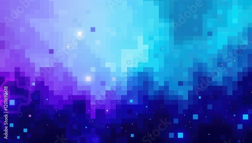 Abstract pixel art background Vibrant blue and purple hues digital dreamy atmosphere