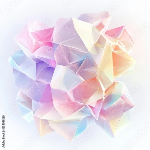 Abstract polygonal pattern with soft pastel tones and glowing edges, centered on a clean white background