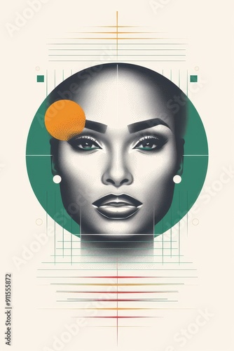 pop art, abstract art, portrait, facial features, illustration, symmetry, minimalism, coiffure, vibrant, head shot, graphic art