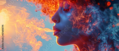 Abstract portrait of a woman with fire and smoke.