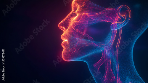 Abstract Profile of a Human Head with Neon Lines and Shadows