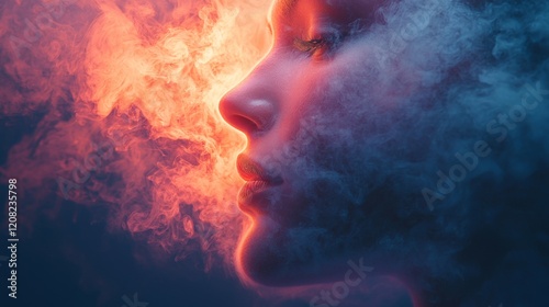 abstract, woman, profile, glowing, surreal, artistic, bold, aesthetic, vibrant, dreamy, modern, creative, striking, dramatic