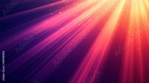 Abstract Purple and Red Background with Light Rays and Glimmering Particles