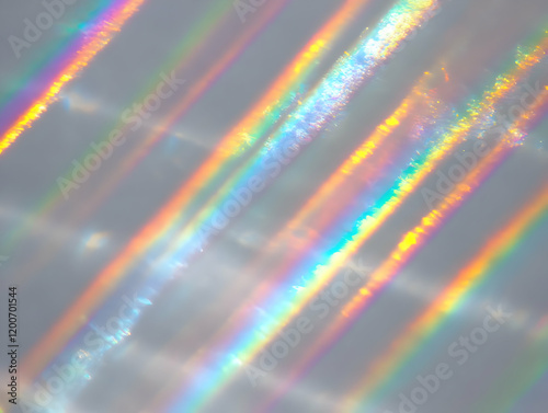 Abstract Rainbow Light Spectrum Creates Colorful Diagonal Streaks on Gray Background