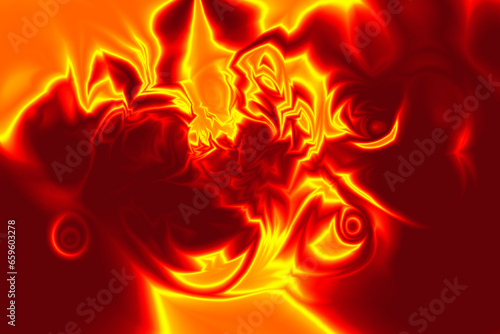 Abstract red fiery background design using yellow, orange, vivid & dark reddish colors forming fire flames like shapes. Used as a backdrop or a wallpaper to express danger, blaze, horror or hell.